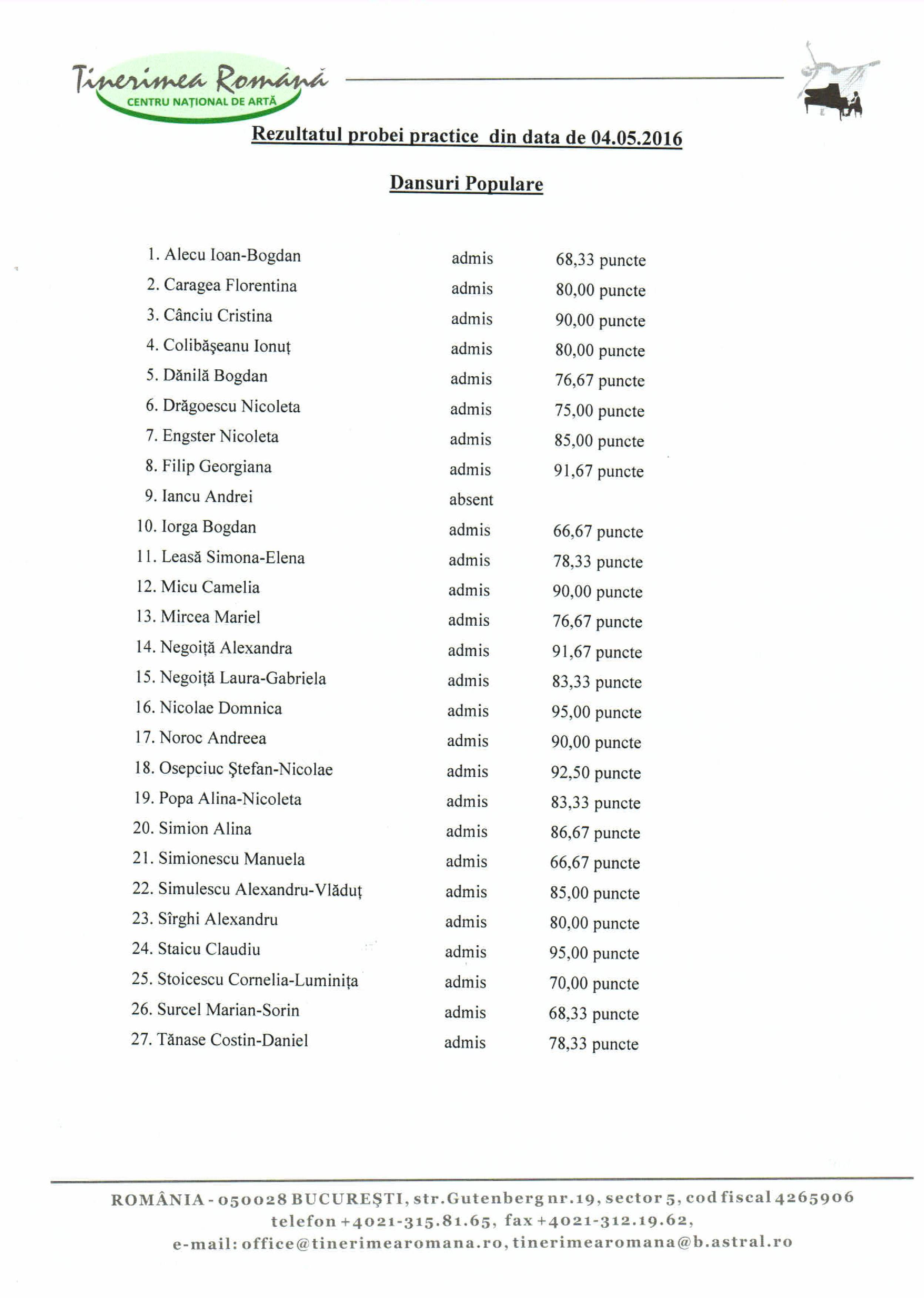 Rezultate Dansuri populare – 4.05.2016