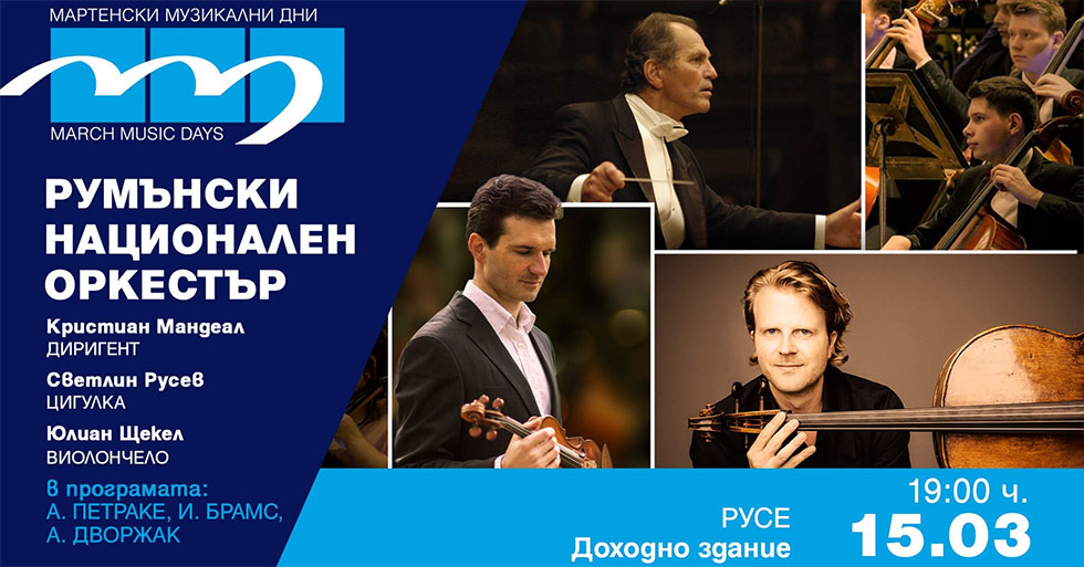 Orchestra Naţională Simfonică a României dirijată de Cristian Mandeal va concerta duminică, 15 martie, de la ora 19 la Sala Teatrului din Ruse, în cadrul ediţiei a 65-a a Festivalului Internaţional March Music Days, unul dintre cele mai vechi şi mai reputate din Bulgaria, festival cu o strategie de program modernă care se bucură de o numeroasă participare a publicului. Fondat în 1961 şi organizat de Municipalitatea din Ruse, în fiecare an festivalul transformă oraşul de pe malul Dunării într-o capitală autentică a muzicii, un punct de întâlnire al muzicienilor din Europa şi din întreaga lume.