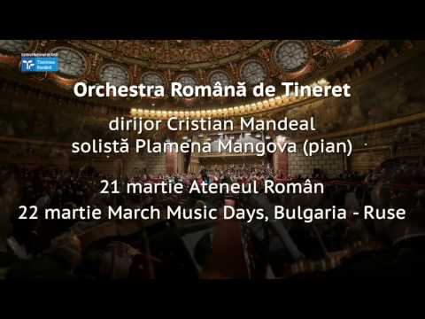 Tinerimea Română prezintă pe 21 martie, de la ora 19.00, la Ateneul Român, un fantastic program Mozart, Beethoven, Brahms în interpretarea Orchestrei Române de Tineret dirijată de Cristian Mandeal alături de câștigătoarea celebrului concurs Regina Elisabeta, pianista Plamena Mangova din Bulgaria.
